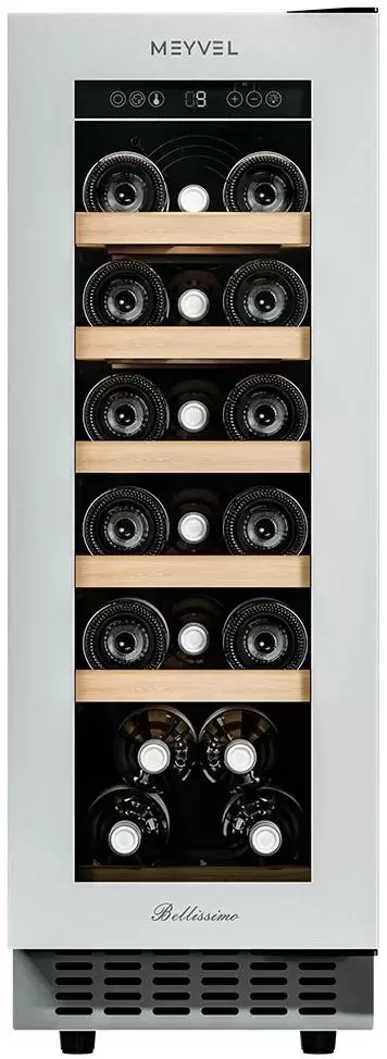 Винный холодильник Meyvel MV19NH-KWT1 имеет одну температурную зону, в которой можно разместить бутылки и единовременно выставить только одну комбинацию настроек. Он встраивается в нишу, что удобно, если у вас ограничен метраж помещения. Благодаря компактным размерам данная модель — отличный выбор для офиса, гостиничного номера. Количество бутылок, которое можно разместить с учетом полной комплектации и из расчета объема бутылки 0,75 л, — 19 шт.